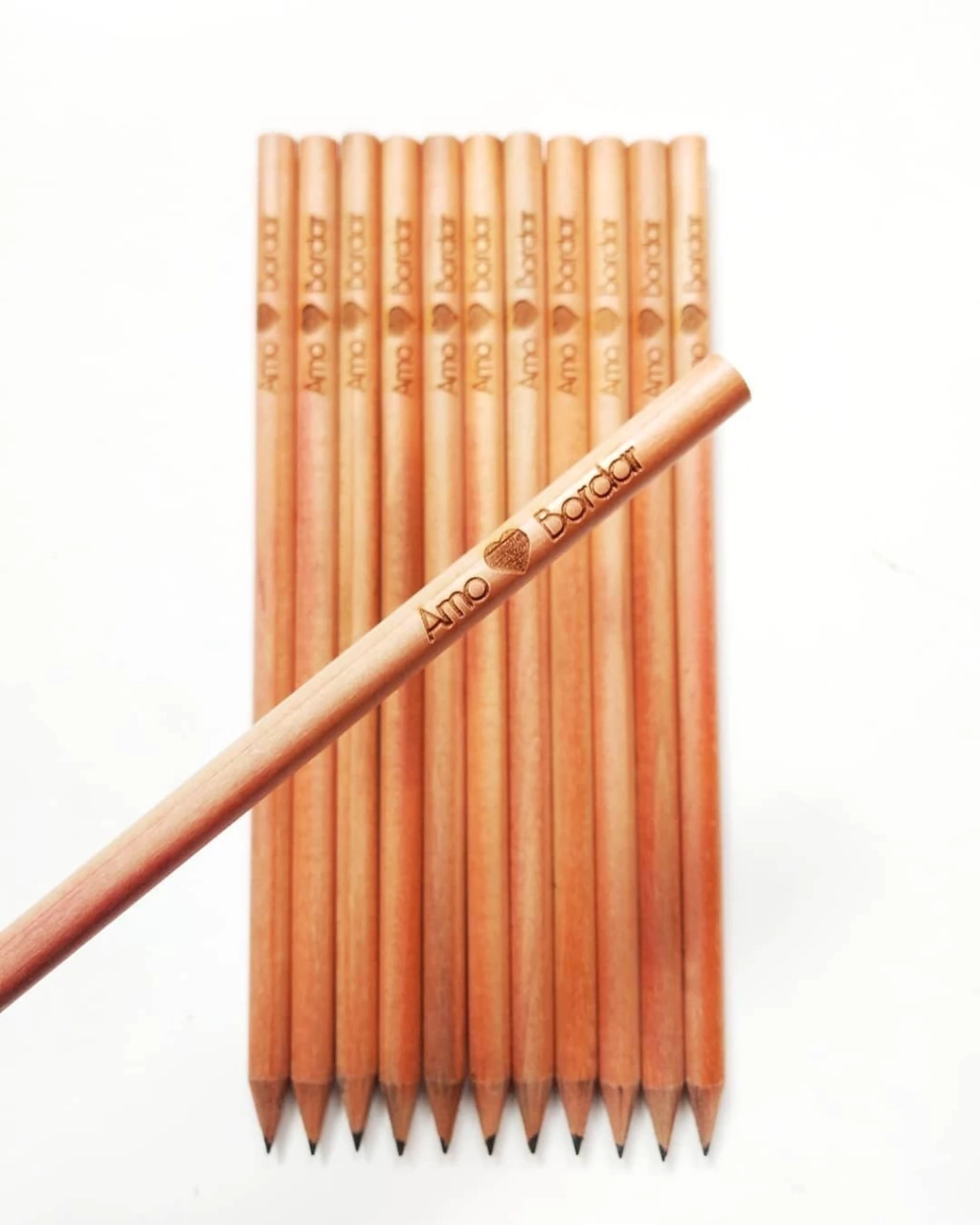 Lápices grafito negro, ecológicos con cuerpo madera natural.