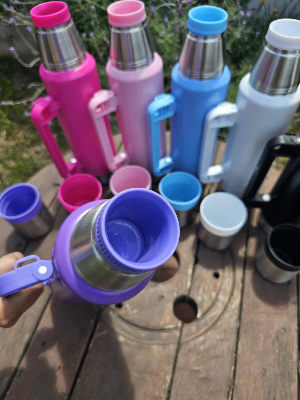 Tienen la fusión perfecta entre estilo y funcionalidad la tienen nuestros termos de 1,2 litros. Disponibles en seis vibrantes colores, estos termos son ideales para mantener el agua o la bebida que quieras a la temperatura perfecta, para ese viaje en ruta, en la oficina o en tu casa.